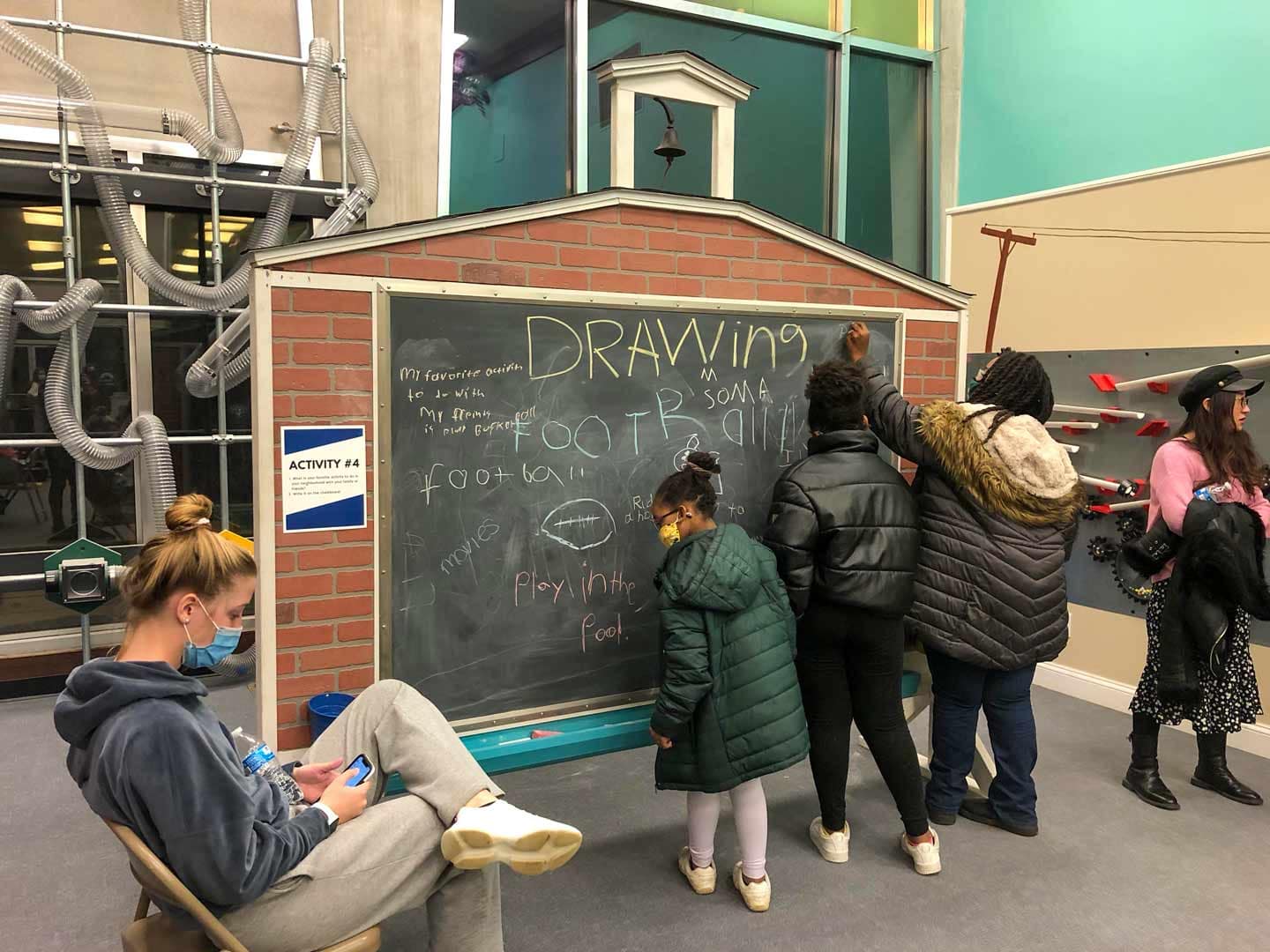 Our working artist group designed 3 exhibits that reflected the values and goals that our community indicated were most important- sports, storytelling, collaboration, and learning.
